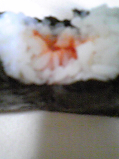 今日の昼ごはん。 おにぎり1個...。 中味は、さて、何でしょう? なぜかクイズ形式にしてしまいました。 正解は、明太子! オチも意味もなく、すみません。